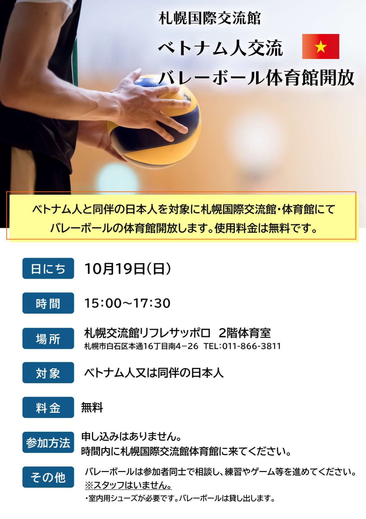 ベトナム人交流バレーボール体育館開放
