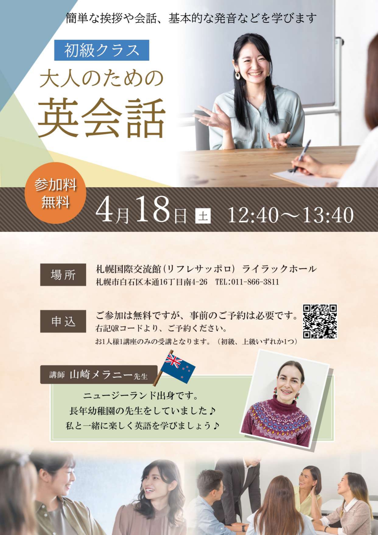 | 備考 | ご参加は無料ですが、事前のご予約が必要です。 お1人様1講座のみの受講となります。(初級、上級いずれか1つ) |