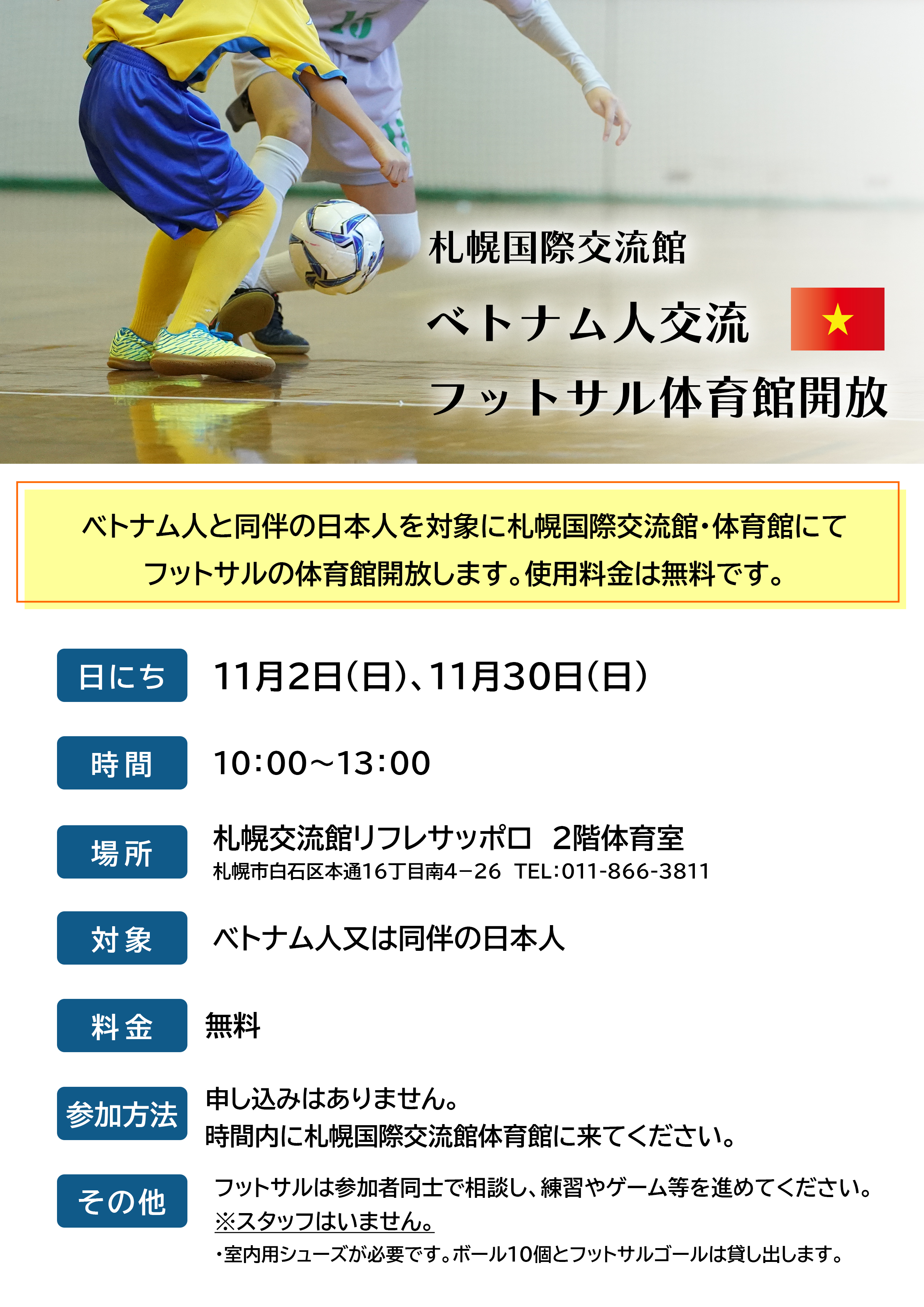 11月 ベトナム人交流 フットサル体育館開放